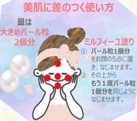 よく振ってからパール粒1個分をお顔の5点に置き、